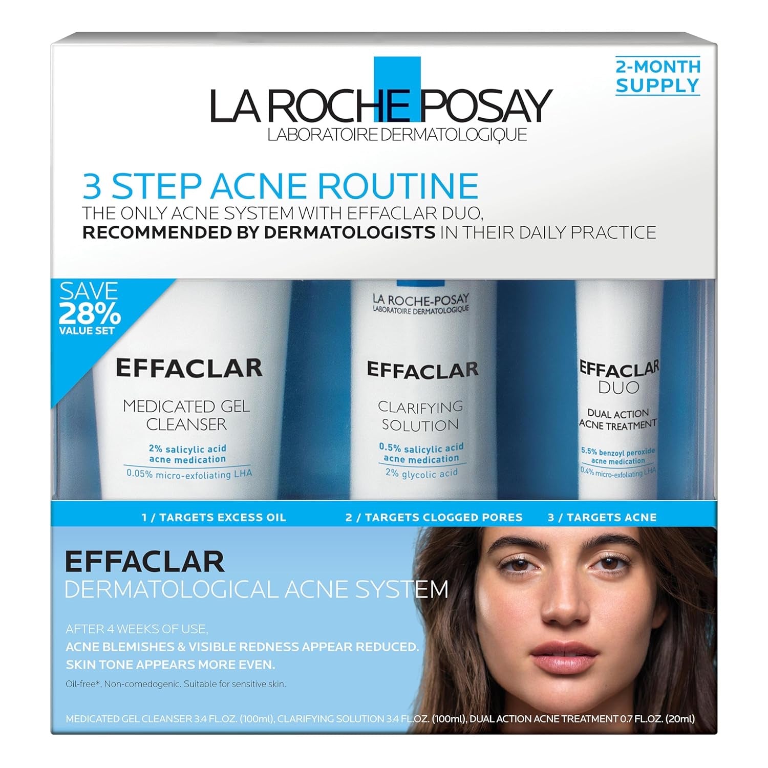 La Roche-Posay Effaclar 3-Step Acne Treatment System – Cleanser, Toner & Spot Treatment for Sensitive Skin with Salicylic Acid and Benzoyl Peroxide
